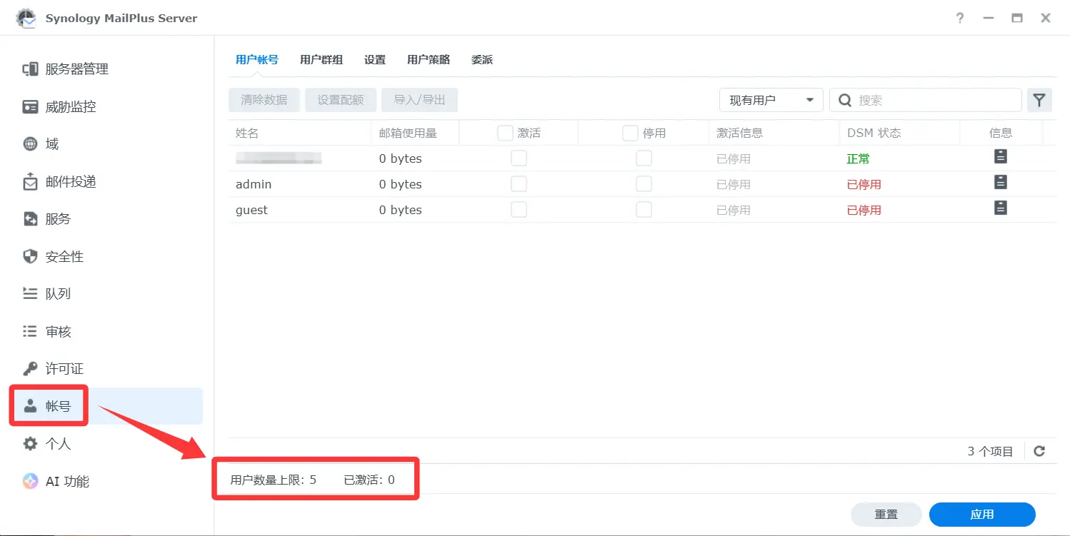 群晖 MailPlus-Server 默认仅支持 5 个免费用户。如需创建更多账户,需要借助本文所展示的技术研究方法。