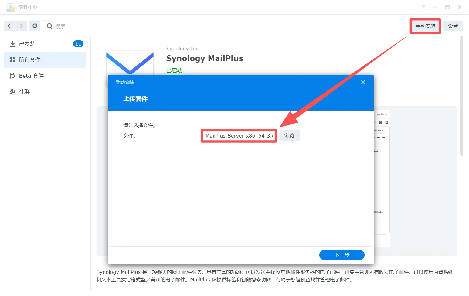 若存在更新版本,下载后在“套件中心 → 手动安装”中导入。