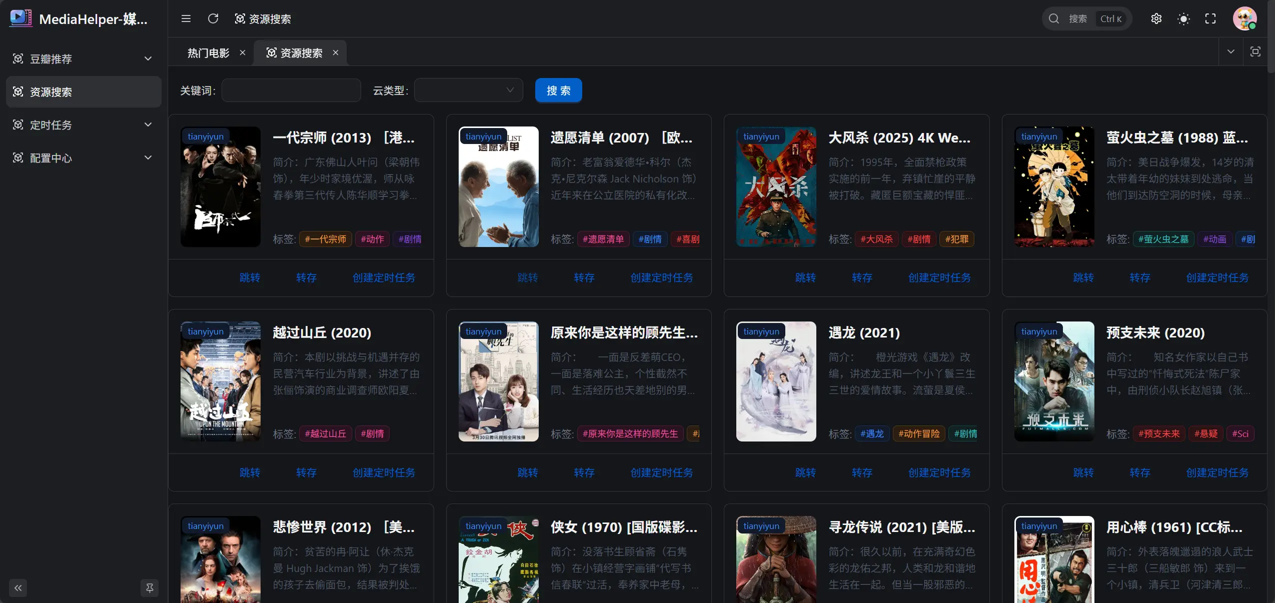 MediaHelp 是一个强大的媒体资源管理工具,支持多个主流网盘的资源转存和管理功能。它能帮助你更高效地管理和组织你的媒体资源,是您的私人媒体管理助手。