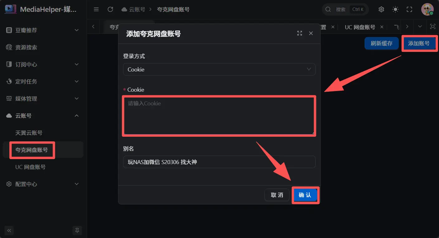 Cookie值粘贴进去;点击 确认 保存。